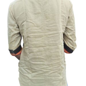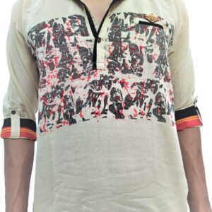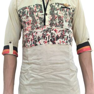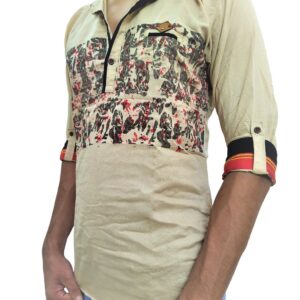 Men’s Printed Fitted Kurta Shirt With Half Sleeves – Golden Cream