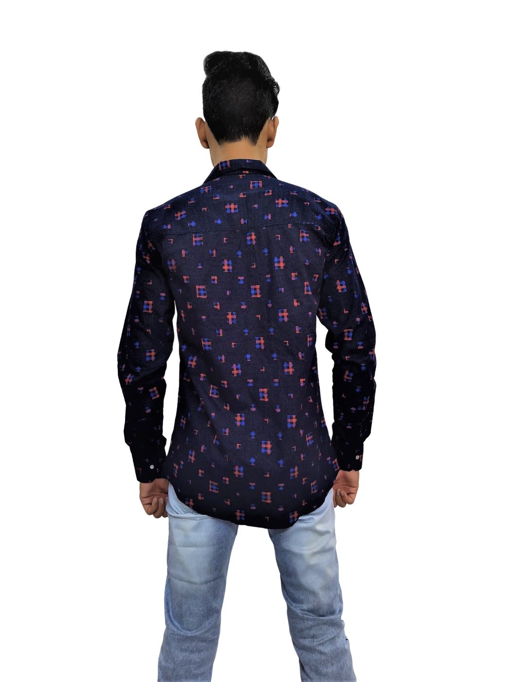 Look cool all day in this print men’s full-sleeve shirt made of good quality Soft Denim. To add an exotic touch, match it with a pair of your favorite trousers.