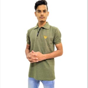 Solid Green Polo Collar Half Sleeve T-Shirt