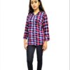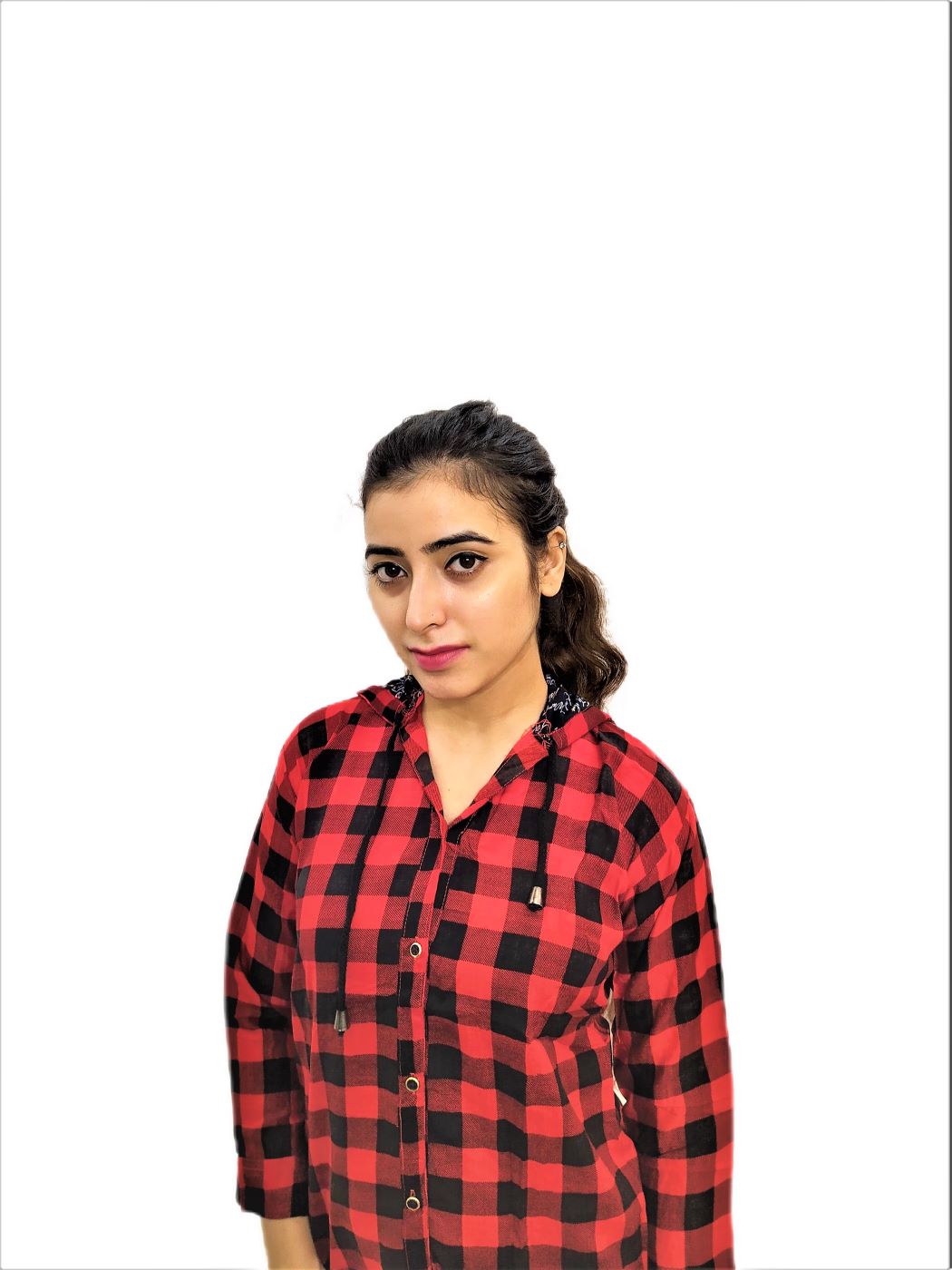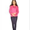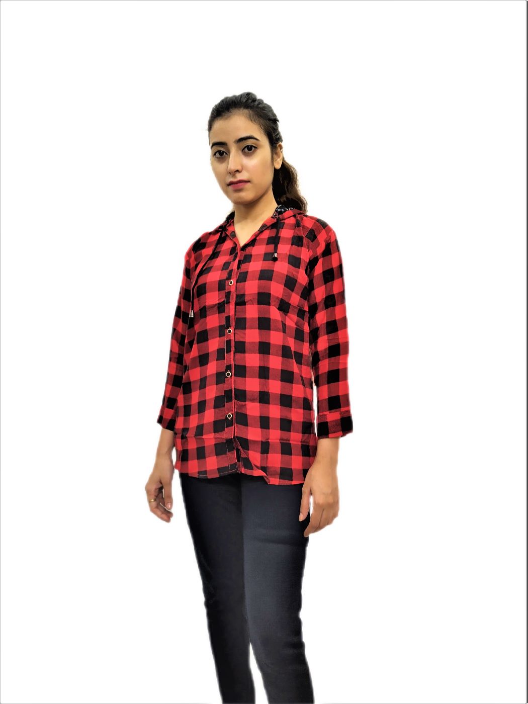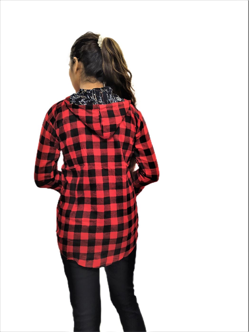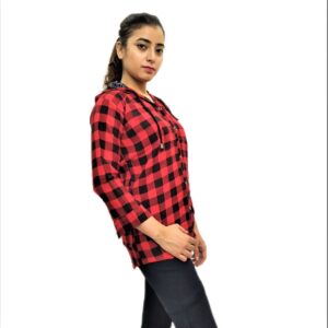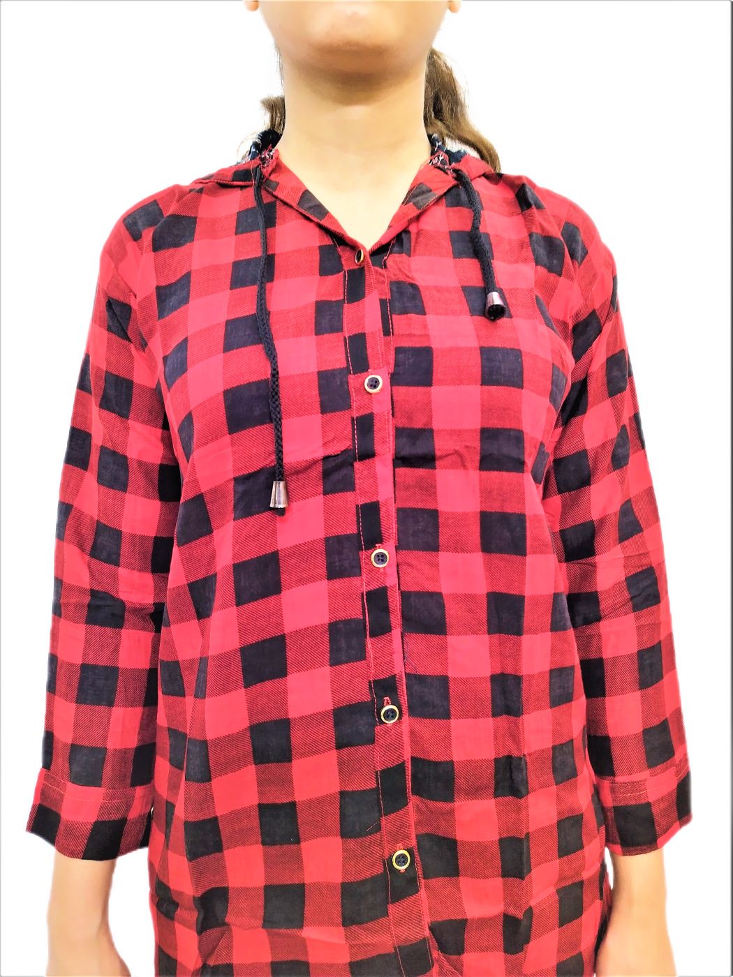 Women’s Maroon (Red) Check Button Front 3/4 Sleeve Hooded Sweatshirt
